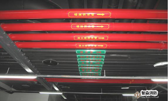 消防泵房設備布局美觀,閥門高度一致,油漆涂刷均勻,管道成排成線,標識清晰。