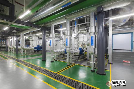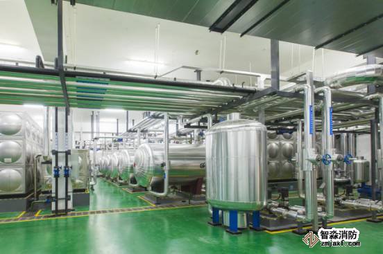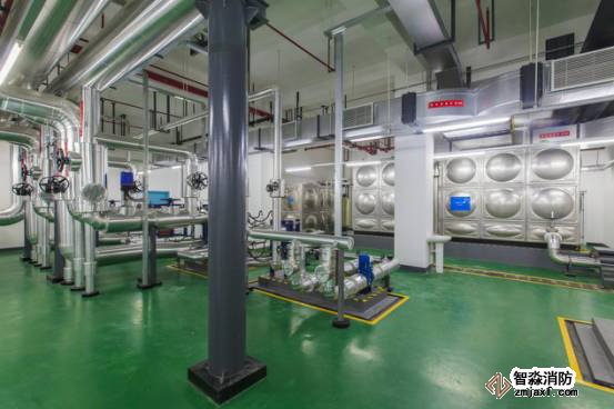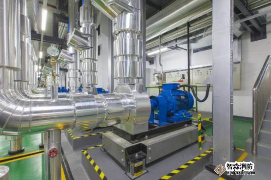 生活水泵房設備布局美觀,鋁皮外保護精致,管道成排成線,標識清晰。