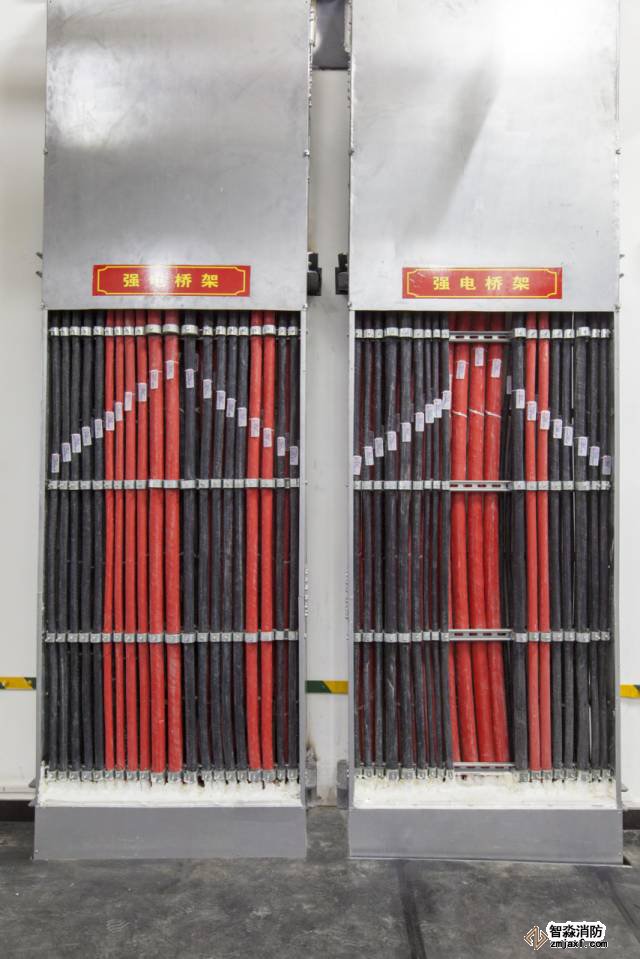 豎向橋架內電纜排布有序,標識清晰,防火封堵到位。