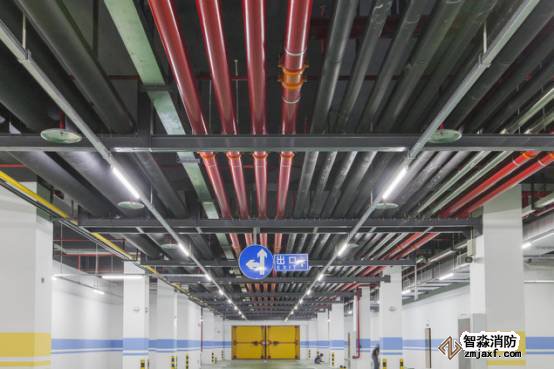 車庫管線排布美觀,聯合支吊架安全可靠,管道居套管中,燈帶線槽平直,噴淋布置間距一致,標識清晰。