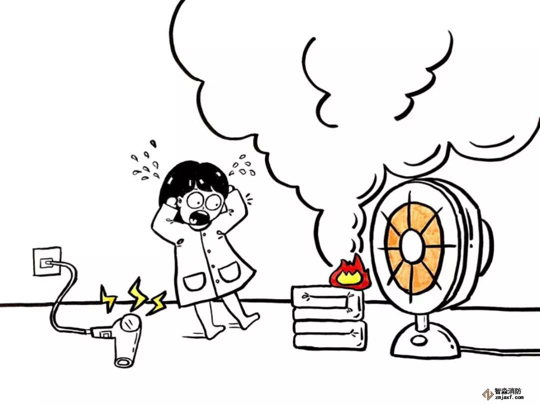 熱得快在開水瓶中持續工作會將水燒干,繼續干燒會引起火災;取暖器近距離接觸衣物2分鐘就會著火;電吹風對準棉被工作2分鐘就會使棉被燒焦。同時老舊建筑內電線老化,使用大功率電器極易造成火災。