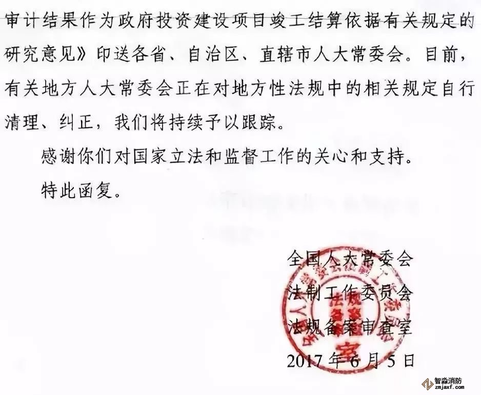 早在2017年全國人大常委會法工委復函《關于對地方性法規中以審計結果作為政府投資建設項目竣工結算依據有關規定提出的審查建議的復函》。該復函提出: