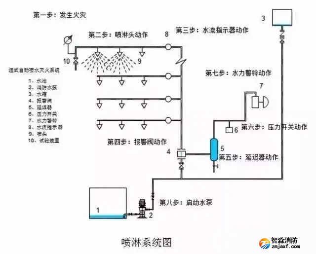 2、濕式報(bào)警閥組的復(fù)位:在撲救完火災(zāi)之后或者實(shí)驗(yàn)完之后,停止水泵,更換上新的噴頭,然后開(kāi)啟末端試水裝置,開(kāi)啟水泵,當(dāng)末端試水裝置處有穩(wěn)定水流流出時(shí),即可關(guān)閉末端試水裝置閥門(mén),然后停止消防水泵,閥組即可復(fù)位。