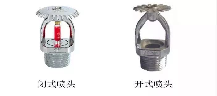 2、 自動(dòng)噴水滅火系統(tǒng)根據(jù)噴頭的不同可以分為兩類,使用閉式噴頭(注意噴頭中間的紅色玻璃管)就是閉式系統(tǒng),使用開式噴頭的為開式系統(tǒng)。其中閉式系統(tǒng)包括濕式系統(tǒng)、干式系統(tǒng)和預(yù)作用系統(tǒng);開式系統(tǒng)包括雨淋系統(tǒng)、水幕系統(tǒng)。